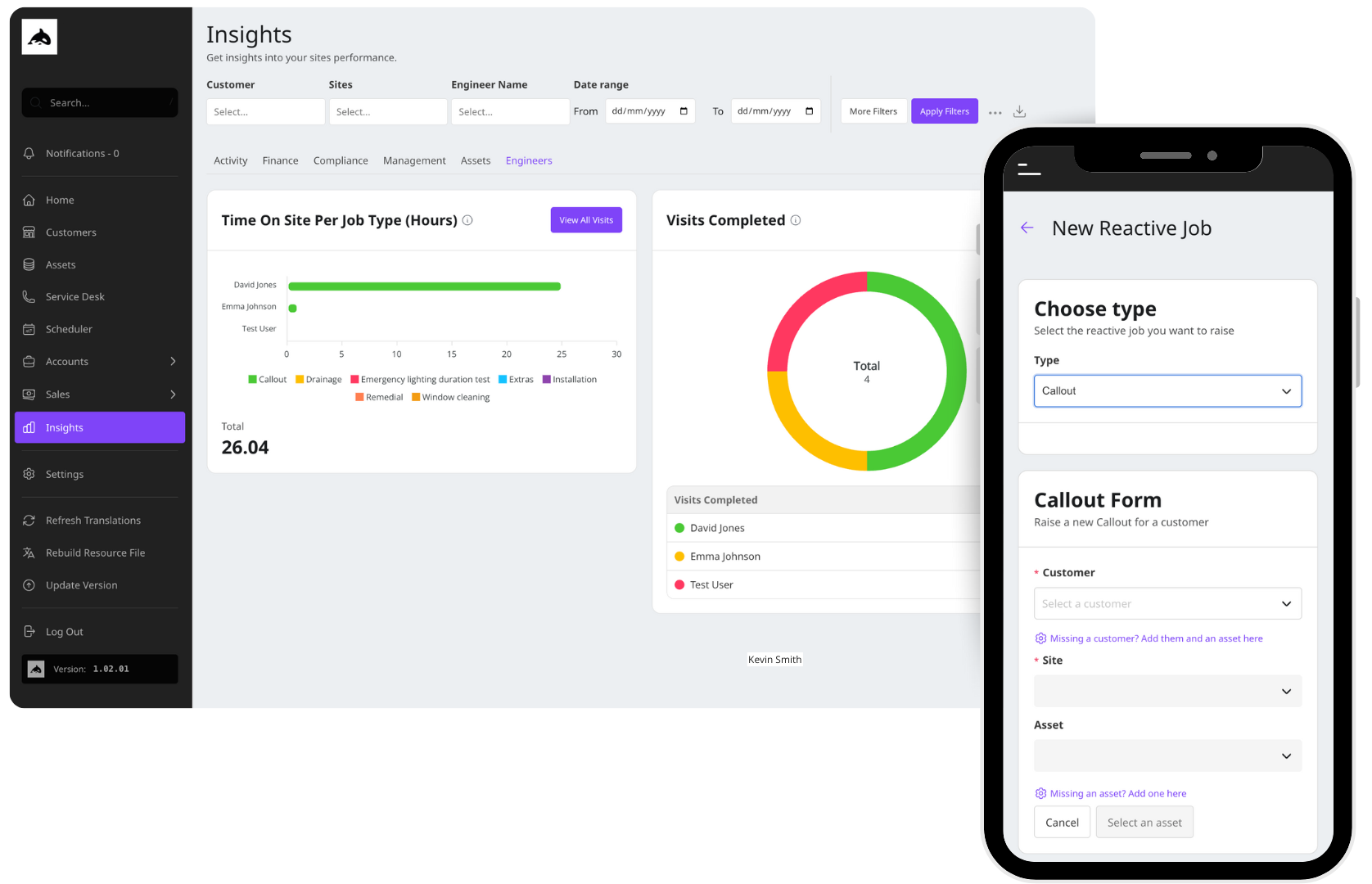 - Job Triage: Prioritised by SLA, site, or service type.